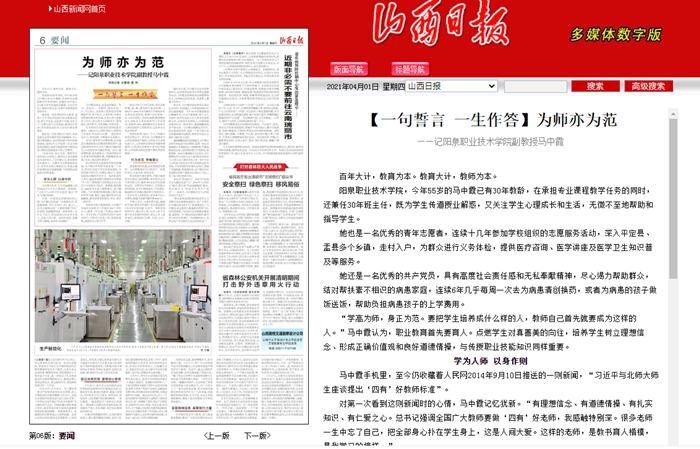 【一句誓言 一生作答】為師亦為范——記陽泉職業技術學院副教授馬中霞
