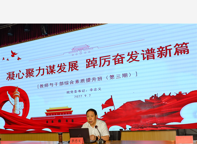 9月2日上午,院黨委書記李忠義作了題為“凝心聚力謀發展,踔厲奮發譜新篇”的專題講座。院黨委副書記趙強主持會議,全院教職工參加了培訓。會上,李忠義根據我院干…