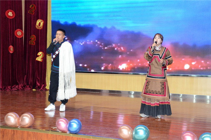 元旦晚會在系學生會精心錄制的VCR視頻中拉開了序幕,他們向現場觀眾送上了節日的祝福,希望大家來年順順利利,萬事如意。2021級專職輔導員白永富老師表演了晉劇老生唱段《三娘教子》,精彩的扮相一出場就贏得了臺下熱烈的掌聲,他唱功深厚,收放自如讓觀眾盡享戲曲文化盛宴,感受傳統文化的魅力。配樂詩朗誦《請黨放心,強國有我》展現了新時代青年學生繼承和發揚老一輩革命家的榮光,時刻準備著,不忘初心,砥礪奮進,青春獻給黨的決心。護士禮儀展示以著裝整潔端莊、妝容清新自然,儀表舉止落落大方、一招一式有條不紊、規范得體,展現了醫學護理系學生的風采。彝族學生吉尾阿且和勒古莫阿呷演唱的歌曲《祖先》,展現了本民族獨特的社會生活和民族特色,讓觀眾欣賞到了獨具風彩的少數民族音樂文化。串燒舞蹈表演以動感的音樂、整齊的舞步燃爆全場,引得掌聲雷動。公益歌曲《青春需要溫暖》用青年學生喜聞樂見的方式進行法治宣傳教育,用優美的歌曲感召學生們要珍惜同學間的寶貴友誼,遠離暴力,構建平安、和諧的校園環境。整場晚會十七個節目別具匠心、環環相扣,流行與古典兼收,溫情與火熱并舉,形式多樣,精彩紛呈,一次又一次渲染了全場氣氛。