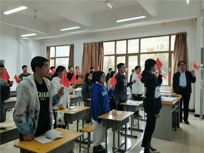 第一課以學習習近平總書記在省部級主要領導干部專題研討班上的重要講話精神為主線,從學習講話、領會精神,明確方向、暢談體會,莊嚴承諾、報效祖國三個環節展開,注重儀式感,突出參與性,同時緊密結合環測專業特點,學習習近平生態文明思想,引導同學們秉承“明德、尚志、篤學、強技”的校訓,全面發展,立志成才,讓夢飛翔,切實擔負起環境監測人“讓天更藍、地更綠、水更清,建設美麗中國”的莊嚴使命。