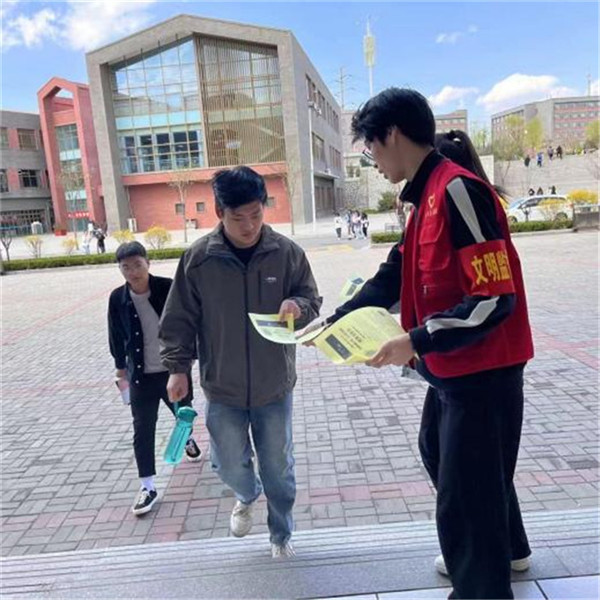 文明監(jiān)督員在辦公樓、教學樓、學生公寓、生活服務(wù)中心等場所向在校師生發(fā)放了500份宣傳資料,倡導大家養(yǎng)成良好的個人衛(wèi)生習慣、加強體育鍛煉保持規(guī)律作息、保持室內(nèi)空氣流通和注意心理衛(wèi)生等生活方式,并結(jié)合專業(yè)向師生講解了科學合理用藥相關(guān)知識。同時,線上黨建微公號“藥學先鋒”在第一時間宣傳“做自己健康的第一責任人,養(yǎng)成健康文明的生活方式”的重要意義。
