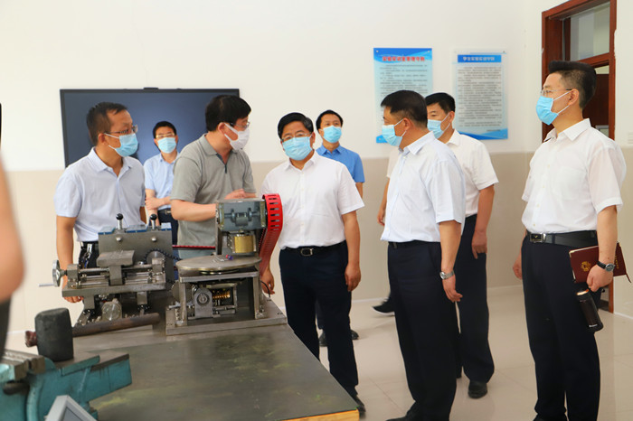 姜四清一行深入學院,查看學院整體規劃和布局,了解專業設置、學生實訓和就業等情況。他強調,要加強學科設置,強化師資建設,提高教學質量,打造優勢專業,積極培養與我市高質量轉型發展相適應的優秀技能人才。