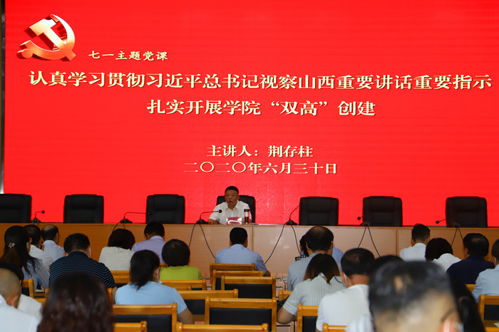6月30日上午,按照院黨委七一主題活動的統一安排,院黨委書記荊存柱講授了題為《認真學習貫徹習總書記視察山西重要講話重要指示,扎實開展學院“雙高”創建》主題黨課。院長曹學仁主持會議。