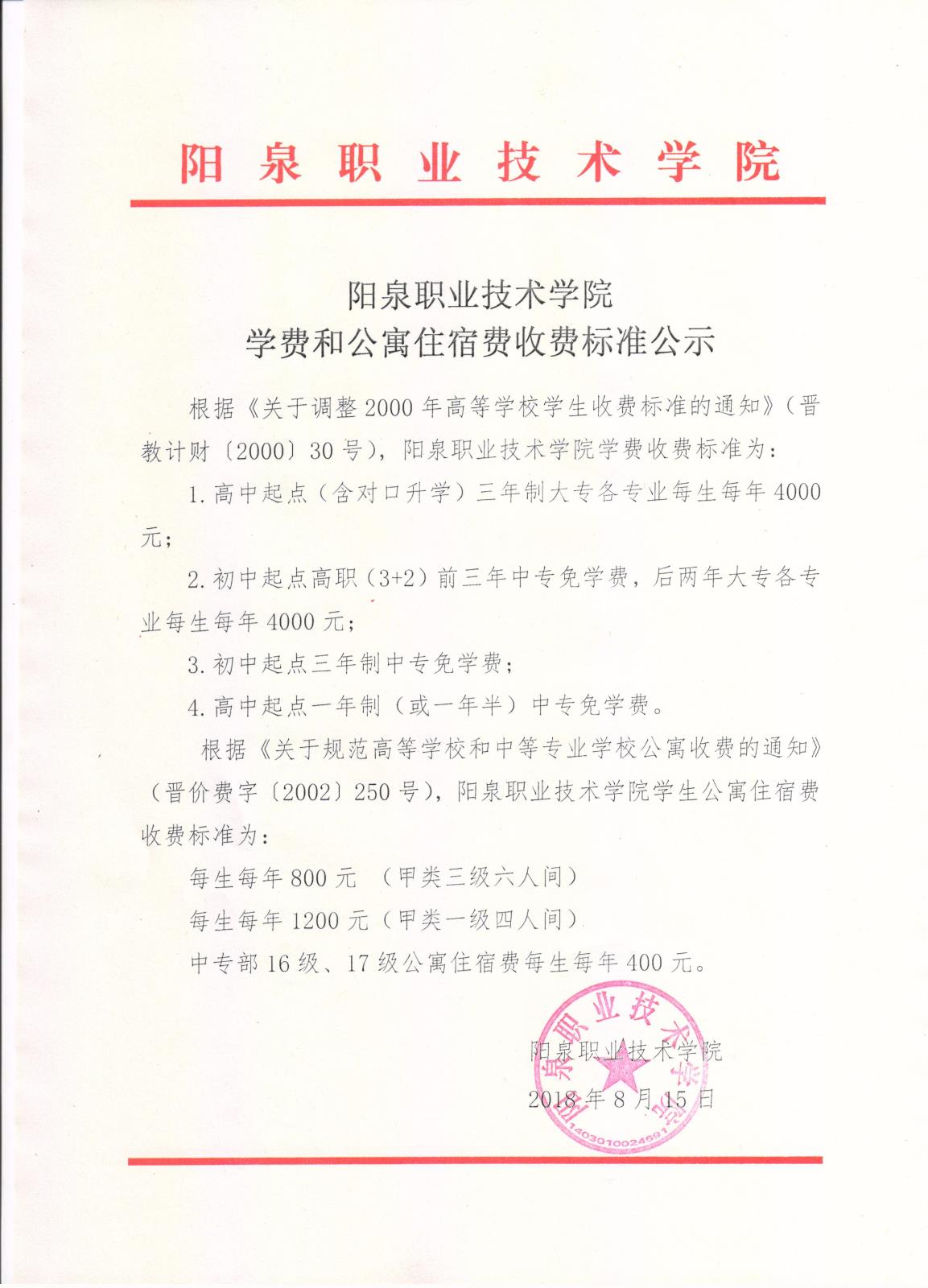 附件:陽泉職業技術學院學費和住宿費收費標準公示.jpg