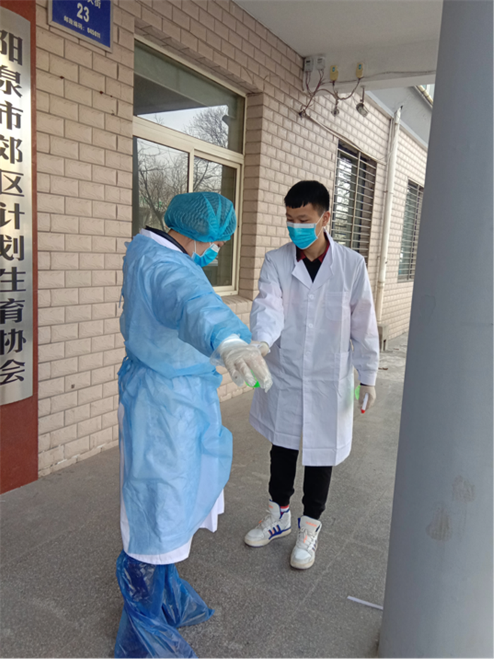 作為此次志愿活動我院志愿者總隊長,護理2004班的劉博同學總是在談“大家”:“我們在工作人員的帶領下,一起采集樣本,為樣本進行轉運和隔離,為每個鄉鎮區域進行病毒消殺。這很需要恒心,大家幾乎每天都是早出晚歸,守在重要的交通關卡和鄉鎮衛生院里,每個鄉鎮都有著萬人以上,但是工作人員最多也只有二十多個人,大家連續奮戰,設卡守點、測量體溫、入戶排查等等,工作繁重,責任重大,不能馬虎。很多同學都很辛苦,每天的志愿服務工作會進行很長時間。”他不好意思的笑著:“忙起來什么也顧不上,大家都沒有留下好照片。”
