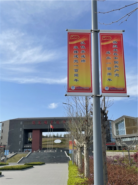 二是豐富宣傳載體,深入人心。在LED大顯示屏滾動播放了宣傳標語和黨史學習教育工作要求;利用校園路燈宣傳刀旗,制作懸掛了100條黨史學習教育內容;各班、團支部制作了黨史學習教育黑板報,讓黨史學習教育成為校園最美的風景線。院廣播站在播音時間堅持誦讀黨史故事、播放紅色歌曲,推動黨的創新理論入耳、入腦、入心,打通宣講“最后一公里”。充分發揮學院思政課教師理論宣講骨干作用,組建了黨史宣講團,細化宣講主題,深入院(系)、班級開展黨史宣講。