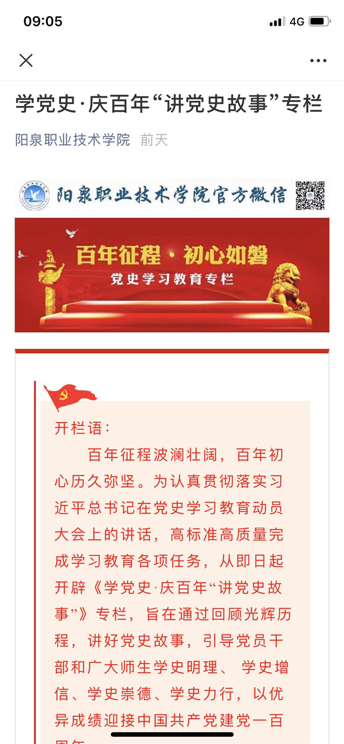 自開展黨史學習教育以來,院黨委立足學院實際,創新宣傳形式、拓寬宣傳陣地、豐富宣傳內容,營造了黨史學習教育濃厚氛圍,高標準、高質量推進黨史學習教育各項工作。