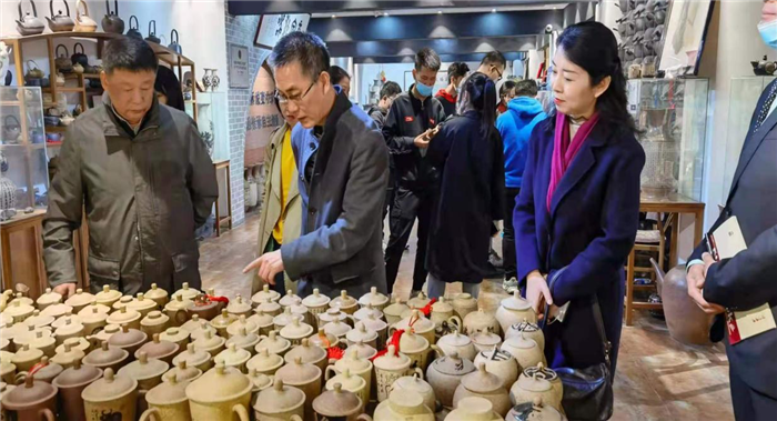 荊書記、財經管理系負責人及同行專業教師與張宏亮先生進行了座談,雙方就以平定冠窯砂器陶藝有限公司為依托,為我院電商專業和美術專業打造高標準、高質量的實習實訓基地達成了意向,同時校企雙方開展深度合作,雙方共同建設陽泉職業技術學院砂器直播室,成立陽泉職業技術學院砂器研究室,在砂器工藝研究、藝術設計、直播帶貨等方面開展合作,不僅提高學生專業技能,更要為陽泉經濟轉型作出職院應有的貢獻。