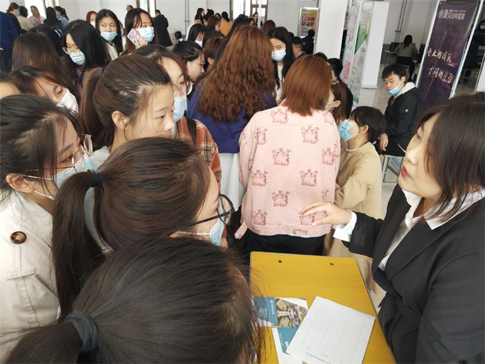 會上醫護系副主任郝海濤做了就業工作動員講話,8家企業分別進行了宣講。在宣講結束后的招聘會現場,學生們積極地向企業進行咨詢,企業對同學的提問做了詳盡的解答。整個招聘會人頭攢動、氣氛熱烈,財經管理系對招聘現場進行抖音直播。此次招聘會共計有214人次向意向企業投遞了簡歷,取得了較好的效果。